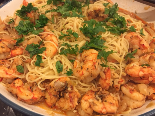 8. Transfer shrimp and sauce to large bowl filled with prepared pasta, toss with parsley.