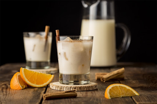 4. Serve the horchata over ice in glasses garnished with orange wheels or slices and a sprinkle of ground cinnamon.