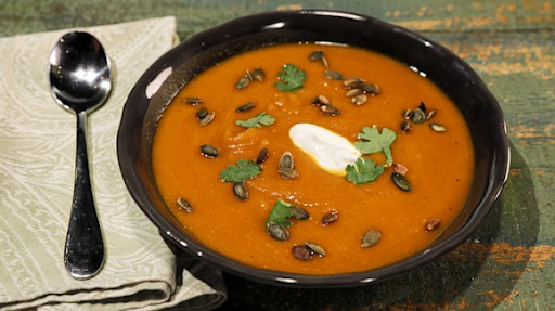 Serve soup in a bowl with a dollop of Greek yogurt. Garnish with toasted pepitas and cilantro, if desired.