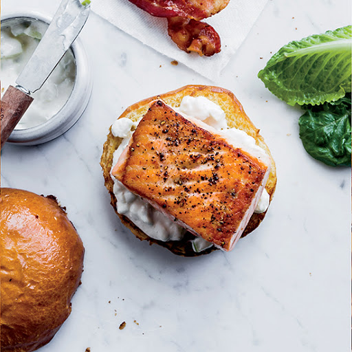Salmon Sandwiches with Bacon and Apple-Horseradish Mayo