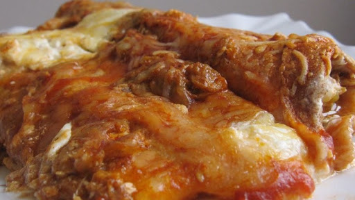 To Assemble Enchiladas: Heat tortillas until soft. In each tortilla place a spoonful of meat mixture, a spoonful of cheese mixture and a bit of shredded cheese. Roll tortillas and place in a lightly greased 9x13 inch baking dish. Top with any remaining meat and cheese mixture, enchilada sauce and remaining shredded cheese.