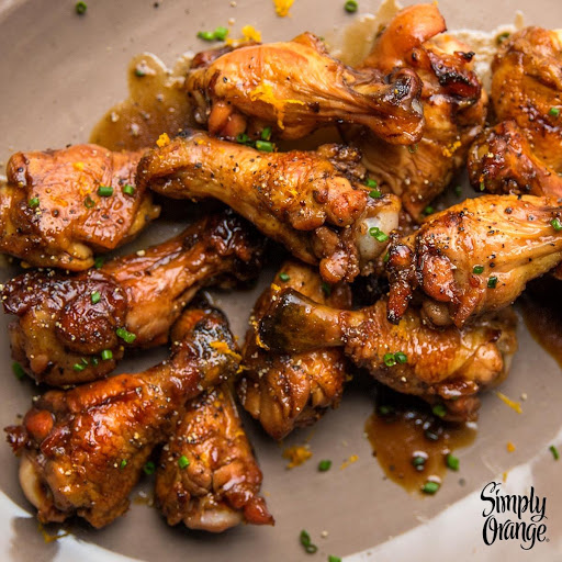 Spicy orange chicken wings are a great alternative to spicy hot chicken wings -- a little sweet and savory.