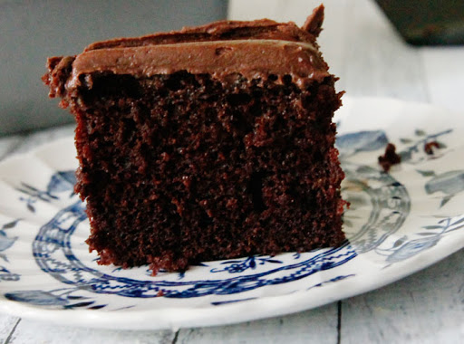 8. Once ingredients are incorporated, turn mixer to medium high speed and beat about 5 minutes, until frosting is smooth and creamy. Spread on top of cooled cake.