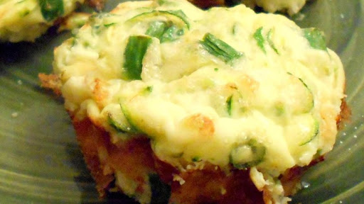 Whisk egg whites, eggs, and half-and-half together in a bowl. Stir zucchini, green onion, and cheese into the egg mixture; pour into prepared muffin cups.