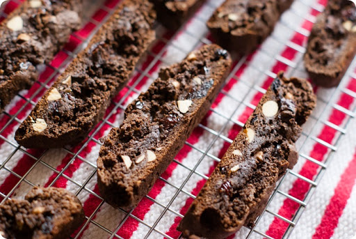 • 1/2 20 baked log into 1/2 " thick biscotti. Arrange biscotti, cut side up, on cookie sheet. Bake for another 20 mins. or until dry.