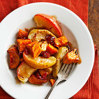 In a 3 1/2- or 4-quart slow cooker, combine sweet potato, apple, and, if desired, dried cherries. In a medium bowl, combine cream, apple butter, and pumpkin pie spice. Pour cream mixture over mixture in cooker; stir gently to combine.