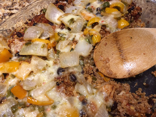 When the quinoa is done top with sautéed peppers and remaining 1 1/2 cups cheese. Bake another 5 to 10 minutes or until the cheese is melted.