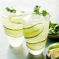 In shaker, muddle gin, cucumber, cilantro and lime. Cover; shake vigorously. Divide ice between 2 tall glasses; top with gin mixture, then tonic.