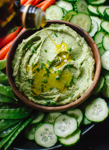 Scrape the hummus into a small serving bowl. Drizzle about a tablespoon of olive oil on top and sprinkle with additional chopped herbs.