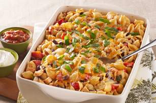 BAKE 20 to 25 min. or until pasta mixture is heated through and cheese is melted. Sprinkle with remaining green onions and cilantro.