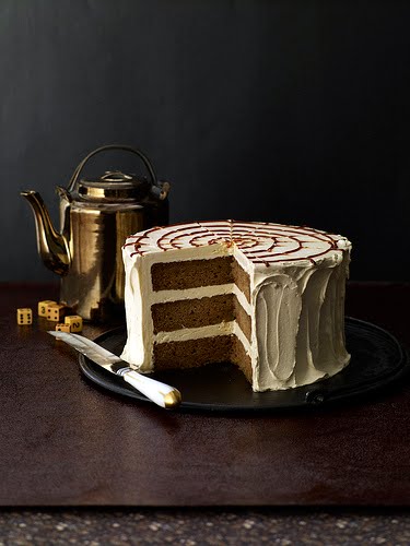If you prefer, you can make your own applesauce for this cake. It’s quite easy. The basic recipe is to peel and cut your apples, then place them in a medium saucepan with small amount (maybe a 1⁄3 cup) apple cider, ground cinnamon to taste, and a tiny bit of dark brown sugar (optional). Cover the saucepan and cook for about 30 minutes. Uncover and mash as you would potatoes. make the apple cake Preheat the oven to 325 degrees F. Butter three 8-inch round cake pans, line the bottoms with parchment paper, and butter the parchment. Dust the parchment with flour and knock out the excess flour. Sift the flour, baking soda, baking powder, salt, cinnamon, allspice, and cloves together into a large bowl. Set aside. In the bowl of a standing mixer fitted with the paddle attachment, beat the butter until creamy, about 4 minutes. Add the sugar and beat until light and fluffy, about 3 minutes. Add the egg and beat until combined. Add the flour mixture to the mixer bowl in three parts, alternating with the applesauce, beginning and ending with the flour mixture. Scrape down the bowl, then mix on low speed for a few more seconds. Divide the batter among the prepared pans and smooth the tops. Bake for 40 to 45 minutes, rotating the pans halfway through the baking time, until a toothpick inserted in the center of the cake comes out clean. Transfer the pans to a wire rack and cool for 20 minutes. Turn the cakes out onto the rack, remove the parchment, and let cool completely. make the caramel buttercream In a medium, heavy-bottomed saucepan, whisk the sugar and flour together. Add the milk and cream and cook over medium heat, whisking occasionally, until the mixture comes to a boil and has thickened, about 10 to 15 minutes. Transfer the mixture to the bowl of a standing mixer fitted with the paddle attachment. Beat on high speed until cool. Reduce the speed to low and add the butter and vanilla; mix until thoroughly incorporated. Increase the speed to medium-high and beat until the frosting is light and fluffy. Add 1⁄3 cup of the caramel and continue mixing until combined. If the frosting is too soft, put the bowl in the refrigerator to chill slightly, then beat again until it is the proper consistency. If the frosting is too firm, set the bowl over a pot of simmering water and beat with a wooden spoon until it is the proper consistency. assemble the caramel apple cupcakes There are many ways to frost a cupcake. If you have a pastry bag, simply fit with the largest tip, fill the bag with frosting, and pipe enough to cover the cupcake in a big mound. If you do not have a pastry bag, use an ice cream scoop with a release mechanism to scoop the frosting and dispense it onto the top of the cupcake. You can also use an offset spatula to frost the cupcakes. Top with drizzled caramel (via spoon or squeeze bottle). Classic Caramel Sauce (for coffee cake and the like) Ingredients yield: about 2 cups 1 1/2 cups sugar 1/4 cup corn syrup 1/2 cup (1 stick) of butter, softened, cut into 1/2-inch cubes 1 ½ cups heavy cream In a medium saucepan with high sides, combine the sugar and corn syrup with 1/2 cup water. Stir the mixture gently so you don’t slosh any of it up the sides of the pan. Turn the heat to medium-high and continue stirring until the sugar dissolves. Increase heat to high, stop stirring, and allow the mixture to boil. Once it begins to turn a rich caramel color (if you don’t want to eyeball it, take the caramel to 300 degrees F on a candy thermometer), remove it from the heat, add the butter and cream, and stir until combined.
