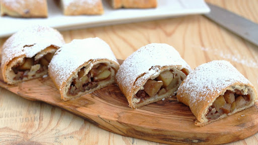 For easy transfer, carefully slide sheet of cooking parchment paper under strudel. Using paper, lift and place strudel on ungreased cookie sheet.