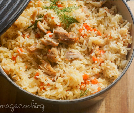Taste for seasoning, adding more salt and pepper if needed. Wash 1-1/2 cups of rice until the water runs clear, and add to pot. No need to stir. Cover and let simmer for 30 minutes. Stir, re-cover, and continue to simmer for another 10 minutes, or until all liquid is absorbed.