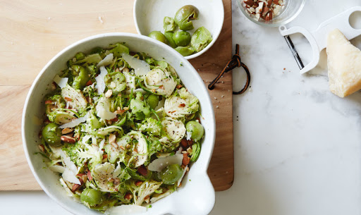 - 6 ounces brussels sprouts, trimmed, thinly sliced lengthwise