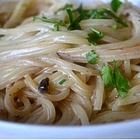 Cook spaghetti in lg. pot of boiling, salted water till al dente. Meanwhile, in lg. skilet, heat olive oil & saute garlic for 1 min. Pour in cream & simmer for 2-3 min, stirring constantly. Take off heat & stir in parmesan cheese. Drain pasta, reserving a cupful of the starchy cooking water & toss with the creamy black garlic sauce. Scatter in the parsley & season with salt & pepper to taste.