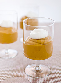 When taking the temperature of the caramel in step 1, tilt the pan and move the thermometer back and forth to equalize hot and cool spots. Work quickly when pouring the caramel mixture over the egg mixture in step 4 to ensure proper thickening. Serve the pudding with lightly sweetened whipped cream.