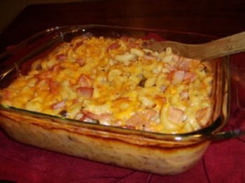 Peel and thinly slice the potatoes about 1/8 inch thick. Spread about 1 cup of the cream sauce in the bottom of the buttered baking dish. Layer with half of the potatoes, half of the cheddar and all of the ham. Spread with another cup of sauce. Layer the rest of the potatoes over the top, then add the rest of the sauce. Sprinkle with the remaining cheddar, the breadcrumbs and parmesan.