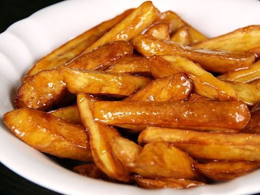 Using a slotted spoon, remove sweet potato pieces, cool in a wire rack then serve.
