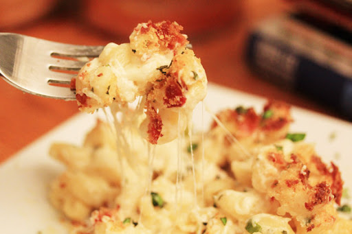 TIP: No matter what mac and cheese recipe you're making, ALWAYS keep at least a cup of the pasta water on hand. Cheese immediately starts to congeal as it cools, so if things get "gloopy", just add enough of the starchy pasta water until its creamy again.