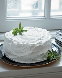 The version of Dominican cake that Scott Conant's friends introduced him to was a white cake layered with dulce de leche filling and frosted with a very sweet meringue. In his adaptation, Conant (along with his pastry chef Gerry Minos) lightens up on the sugar in the meringue and adds a nutty liqueur to the filling and frosting, giving it an Italian flavor. The cake is a knockout, with or without the liqueur, and stellar with either homemade or store-bought dulce de leche.