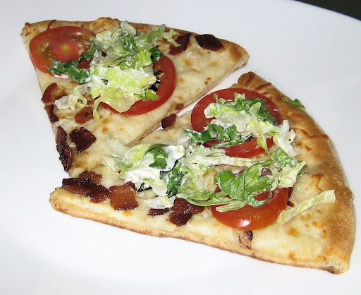 After the crust....this is a cinch!! Brush one tablespoon of olive oil on each pizza. Top with shredded mozzarella and crisp, crumbled, bacon and more mozzarella...then tomato slices. Bake til center is bubbly 8 to 10 minutes (WATCH CAREFULLY). Remove and cut pizzas into slices. Top with lettuce mixed with one tablespoon mayo.