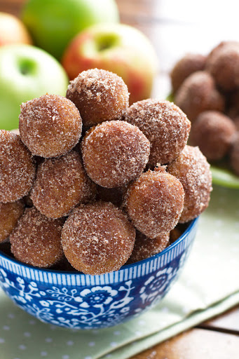 In a medium bowl, combine the sugar and cinnamon together. Dip the tops of each donut hole into the melted butter then coat with the cinnamon sugar mixture. Repeat with all the donut holes (donuts). Depending on how long you dip the donuts into the butter, you may need more butter and/or more cinnamon sugar.
