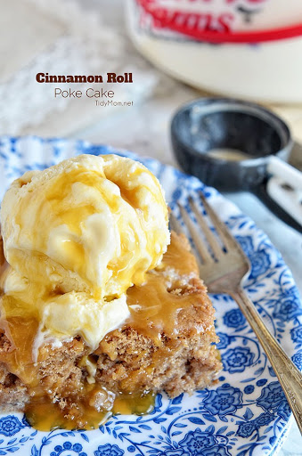 Remove cake from oven and allow cake to cool 20-30 minutes.   Poke holes all over cake, about 1-inch apart, using a wooden spoon handle or a straw.