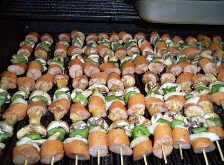 10 Turn the kabobs after about 10 minutes. Brush again & season again. Finish cooking with lid closed, another 5-10 minutes.