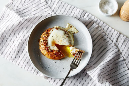 Cover the skillet and let the toad cook for about 3 minutes, or until the egg is done to your liking. Using a spatula, transfer it to a plate and repeat with the other bagel half.