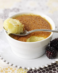 Bake the pudding cakes for 35 minutes or until they are puffy and golden on top. Using tongs, transfer the ramekins to a rack to cool for 20 minutes. Serve the cakes in the ramekins or run a knife around the edge of each cake and unmold onto plates. Serve warm or at room temperature with the berries.