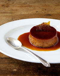 To serve, dip the bottom of each ramekin in hot water, then run a knife around each crème caramel and invert onto individual plates. Break the reserved hardened caramel into large pieces and arrange them decoratively around the custards.
