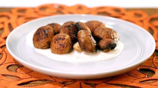 Meanwhile, in a large sauté pan, add butter and place over medium-high heat. Add mushrooms, and cook until tender about 5-7 minutes. Serve with the sauce.