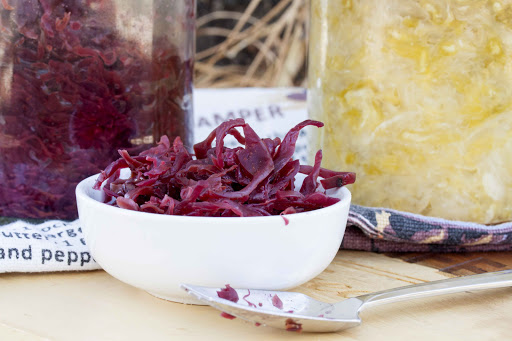 Pack the cabbage tightly into a sterilized jar in layers, pressing down into the jar after each addition as you pack. The cabbage should be completely submerged in the brine you’ve created with no air pockets.