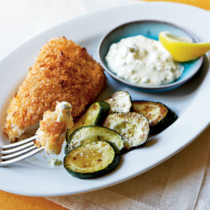 Crispy Fish with Lemon-Dill Sauce and Sauteed Zucchini