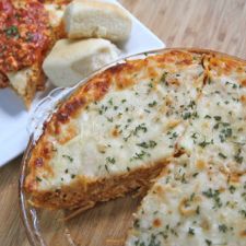 Serve hot using a large spoon to pull servings apart (please do not cut it into squares!). Serve with grated Parmesan cheese, if desired, and some hot, toasty garlic French bread.