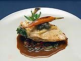 Chicken Florentine with Spring Vegetable and Double Potato Hash and Red Wine Demi-Glace