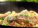 Nest the pasta on large rimmed plates, pour sauce over pasta, and garnish with scallions and the remaining 1/4 cup Parmesan.