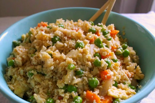 Clean and prepare cauliflower, then pass it through food processor to make cauliflower rice. Set aside.