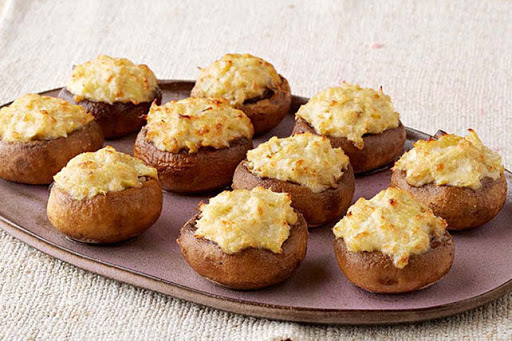 Combine remaining ingredients; spoon into mushrooms. Return to baking sheet (without rack).