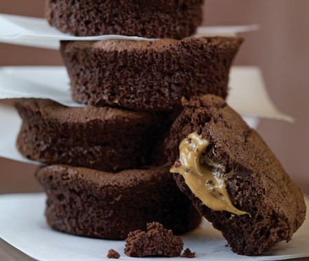 Step 5: Spoon 1/2 cup of the batter into each prepared ramekin. Place 1 teaspoon of the peanut butter in the centre of each one, and cover the peanut butter with a heaping tablespoon of batter.