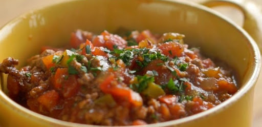 3. Add the diced tomatoes, tomato paste, beef broth, basil, oregano, salt and pepper and bring to a boil, then lower the heat to low and simmer for 30 minutes.