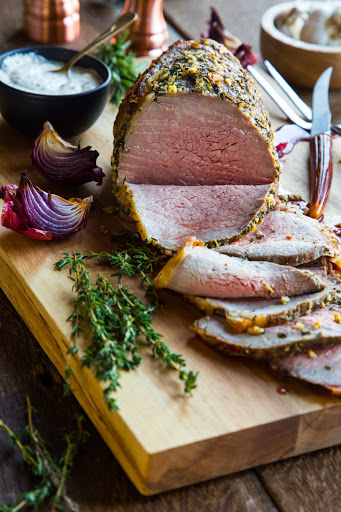 Garlic Herb Roast Beef with Horseradish Mustard Sauce