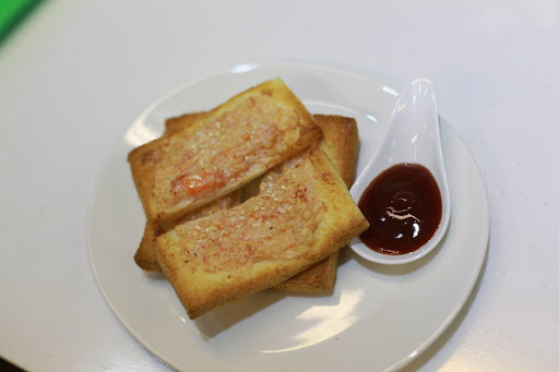 Prepare the bread. Cut the crust of the bread, save the crust and set aside. Gently brush one side of the bread with olive oil, flip over and spread spread half of the shrimp paste on the bread. Cut in half and sprinkle sesame seeds on top. Lightly brush olive oil on the sesame seeds.