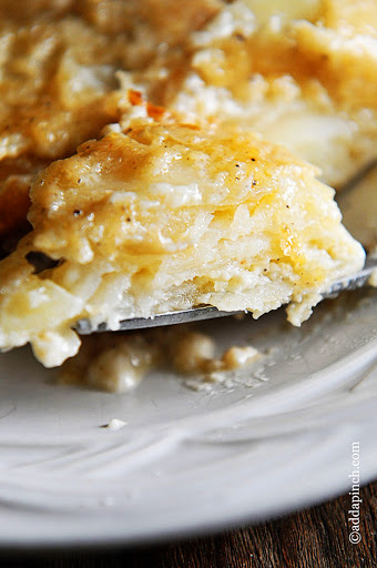 Preheat oven to 350º F. Spray 9x13 casserole dish with nonstick cooking spray and set aside. Place potato slices in a bowl of cold water to keep from turning brown while making cream sauce.