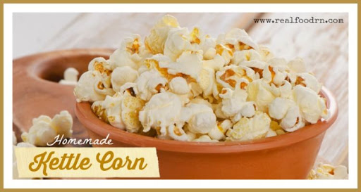 No sir! We had gourmet popcorn. My dad would simmer garlic butter and fresh basil. We would top that with fresh parmesan cheese or nutritional yeast (to give it a cheesy flavor and a B vitamin punch!). I have been making this popcorn in my own kitchen for a while now and I was recently at a foodie convention (yes, I am a giant nerd!) and was introduced to two new products that elevated my homemade kettle corn skills to a whole new (and very healthy) level. See the bottom of my post for information about these new finds…
