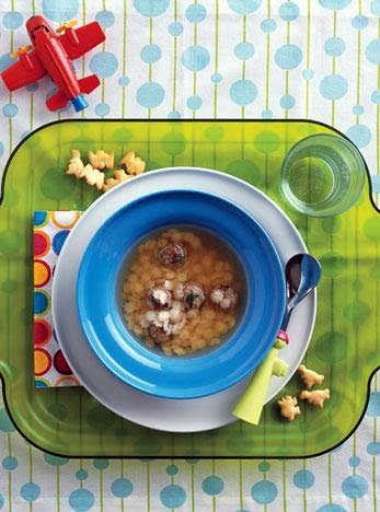 6. Add the chicken stock to the browned meatballs and bring to a boil. Reduce heat and simmer until the meatballs are just cooked through, about 5 minutes. Stir in the pasta and salt to taste.