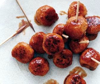 3. Add the barbecue sauce. Cook until it reduces and sticks to the meatballs, about 1 minute. Serve.