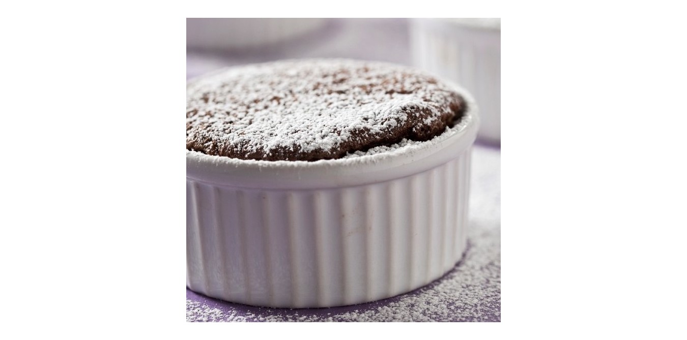 5. Fill the ramekins and place the pan in the oven on the center rack. Bake for 9 to 11 minutes or just until firm to the touch. Dust with cocoa powder or powdered sugar, if desired, and serve immediately.