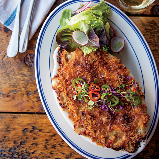 At The Heron, in Narrowsburg, New York, chef Paul Nanni grinds and smokes his own andouille sausage for supergenerous portions of Cajun-inspired macaroni and cheese.