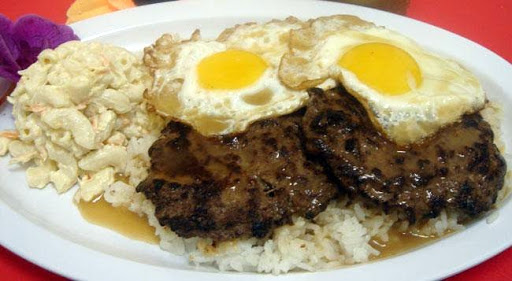 Mix the first 8 ingredients (beef through panko) together and form into 4 patties. Grill or broil patties to desired doneness, about 5 minutes on each side. Divide rice between 4 plates and top each with a patty, 1 egg, teriyaki sauce, and gravy.